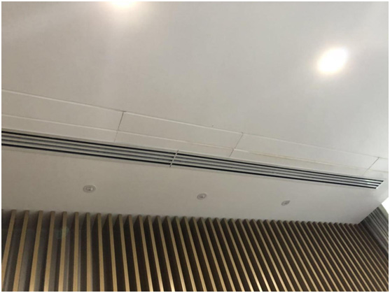 施工內(nèi)容: 本項(xiàng)目面積約為244平方,層高4.6米(原始層高),吊頂完成面層高3.0米。根據(jù)業(yè)主實(shí)際需求我方設(shè)計(jì)的但單位冷負(fù)荷為240W/平方。 本項(xiàng)目中展廳作為展示公司實(shí)力和企業(yè)形象。對(duì)美觀度要求較高,所以在空調(diào)室內(nèi)機(jī)上選型必須要“以藏為美”,因此我司設(shè)計(jì)使用中靜壓風(fēng)管機(jī)配合風(fēng)管,使得美觀度更高,送風(fēng)均勻,舒適性更好。